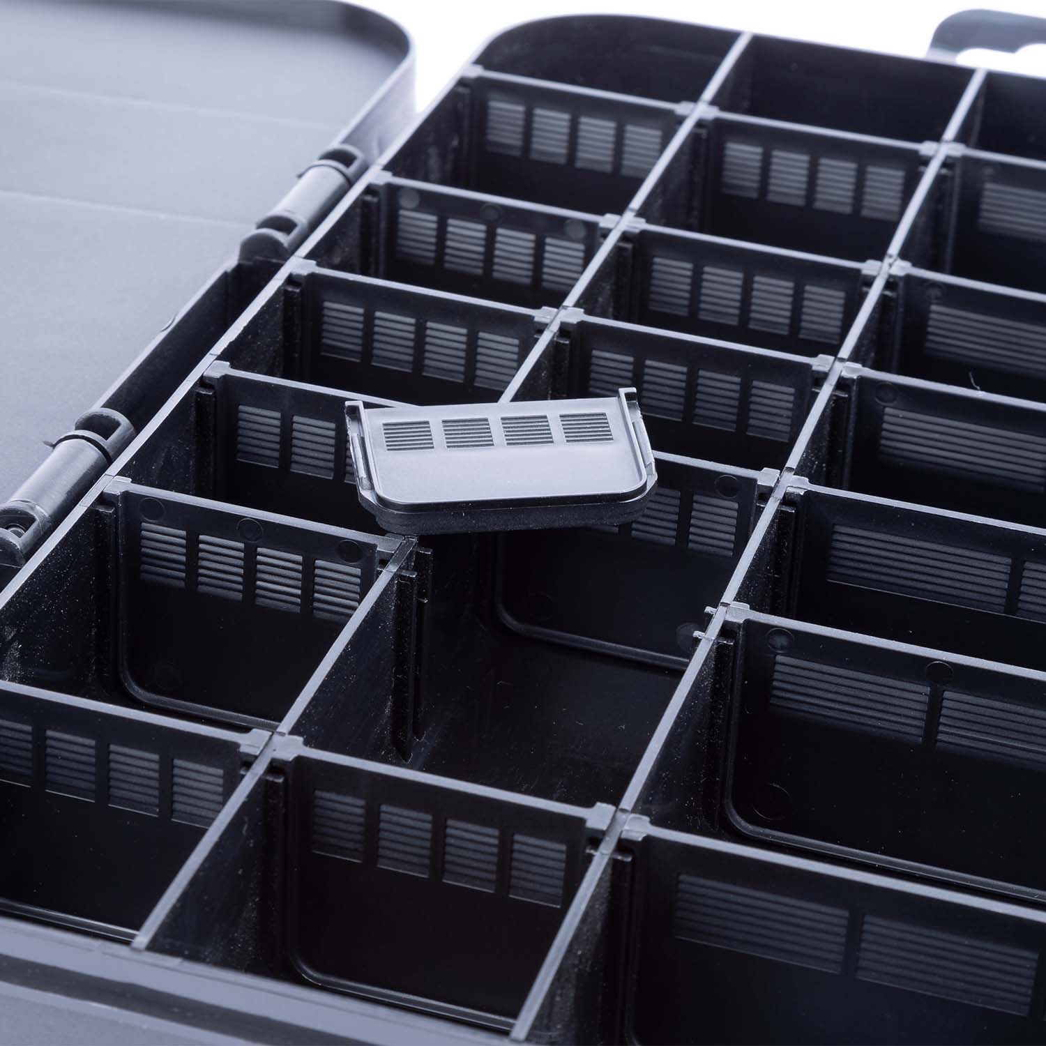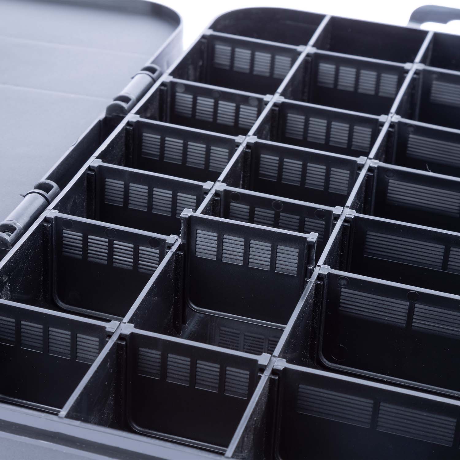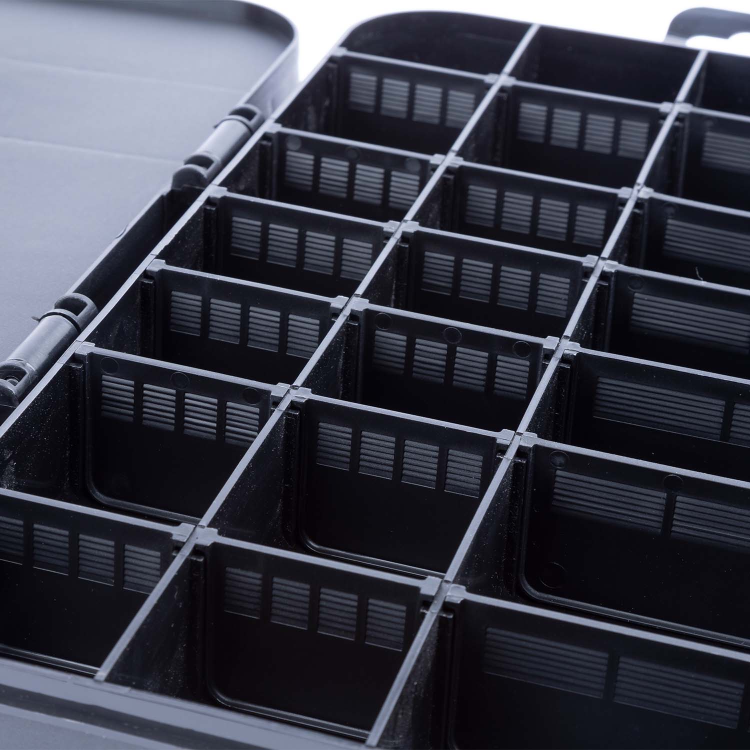 NYTRO STARKX FS DOUBLE FEEDER BOX 360Ten dwupoziomowy pojemnik na sprzęt wędkarski został zaprojektowany z myślą o wędkarzach łowiących metodą feeder. Dwie warstwy zapewniają dużo miejsca na wszystkie podajniki i akcesoria. Przestrzeń wewnątrz pudełka jest wygodnie rozmieszczona z dodatkowymi przegrodami, aby przechowywać cały sprzęt w uporządkowany sposób. • Zaprojektowany dla wędkarzy feederowych• Dwuwarstwowe pudełko• Mocne tworzywo ABS• Przezroczysta pokrywa • Wygodnie rozmieszczone wyjmowane przegródki • Doskonałe do przechowywania akcesoriów do feedera • Rozmiar pudełka 360 x 230 x 70 mmNYTRO STARKX FS TACKLE BOXESMasz dość bałaganu w torbach i gubienia sprzętu? StarkX FS Tackle Boxes są rozwiązaniem! Gama obejmuje sześć modeli o różnych kształtach, rozmiarach i funkcjach, które pomogą Ci przechowywać sprzęt feederowy w uporządkowany sposób. Niezależnie od tego, czy przechowujesz swoje koszyki, podajniki i akcesoria w domu, czy też zabierasz je and wodę, mamy odpowiednie pudełko.• Zaprojektowany dla wędkarzy feederowych• Dwuwarstwowe pudełko• Mocne tworzywo ABS• Przezroczysta pokrywa • Wygodnie rozmieszczone wyjmowane przegródki • Doskonałe do przechowywania akcesoriów do feedera • Rozmiar pudełka 360 x 230 x 70 mm