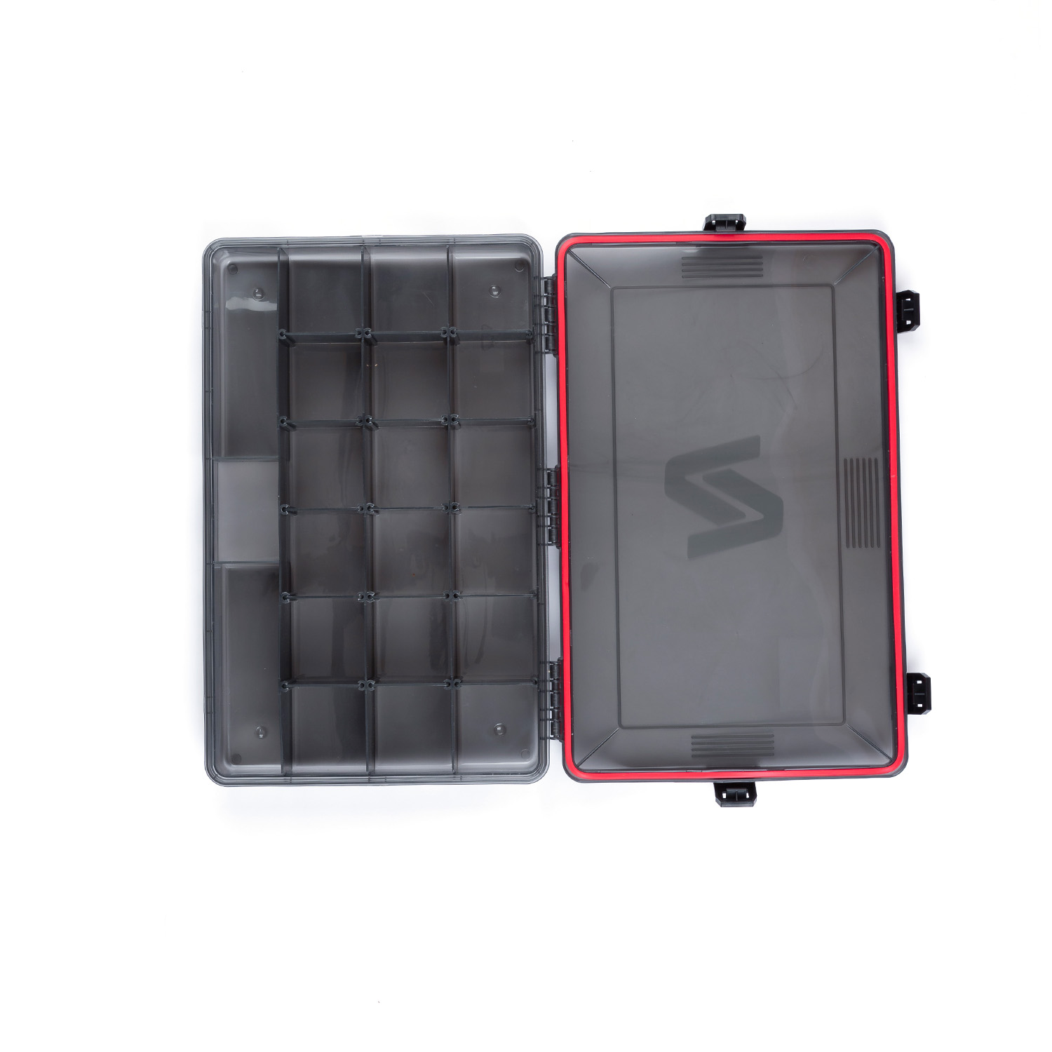 NYTRO STARKX FS FEEDER BOX LS355-SDuże pudełko na sprzęt, idealne do przechowywania koszyczków zanętowych i akcesoriów, takich jak krętliki, koraliki, stempki, rurki itp.• Zaprojektowane dla wędkarzy feederowych• Mocne tworzywo sztuczne• Przezroczysta pokrywa • Wodoodporna uszczelka• Wygodnie rozmieszczone wyjmowane przegródki• Doskonałe do przechowywania akcesoriów do feedera • Rozmiar pudełka Duży-płytki: 355 x 230 x 50 mmNYTRO STARKX FS TACKLE BOXESMasz dość bałaganu w torbach i gubienia sprzętu? StarkX FS Tackle Boxes są rozwiązaniem! Gama obejmuje sześć modeli o różnych kształtach, rozmiarach i funkcjach, które pomogą Ci przechowywać sprzęt feederowy w uporządkowany sposób. Niezależnie od tego, czy przechowujesz swoje koszyki, podajniki i akcesoria w domu, czy też zabierasz je and wodę, mamy odpowiednie pudełko.• Zaprojektowane dla wędkarzy feederowych• Mocne tworzywo sztuczne• Przezroczysta pokrywa • Wodoodporna uszczelka• Wygodnie rozmieszczone wyjmowane przegródki• Doskonałe do przechowywania akcesoriów do feedera • Rozmiar pudełka Duży-płytki: 355 x 230 x 50 mm