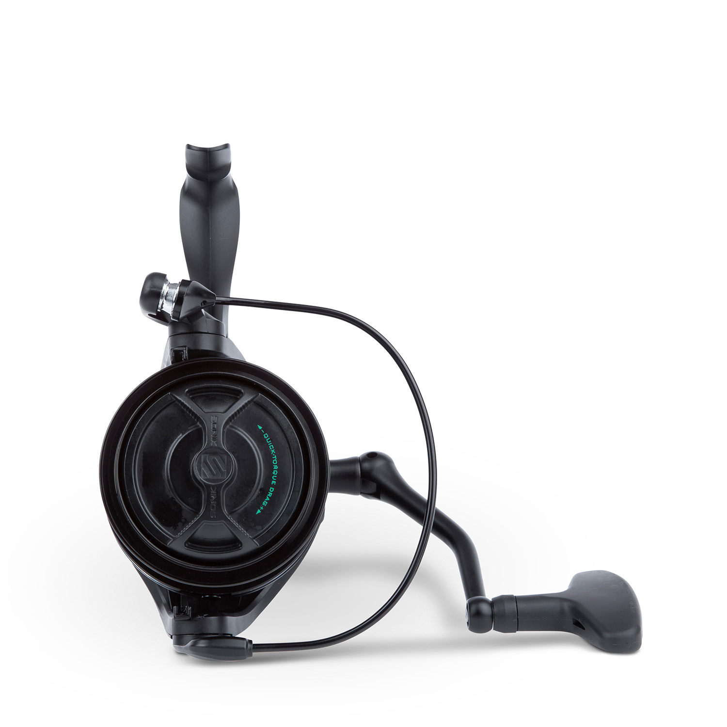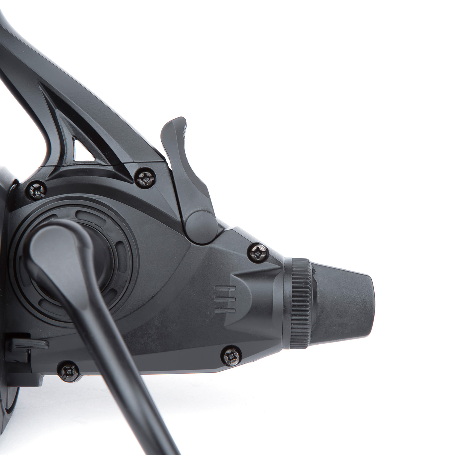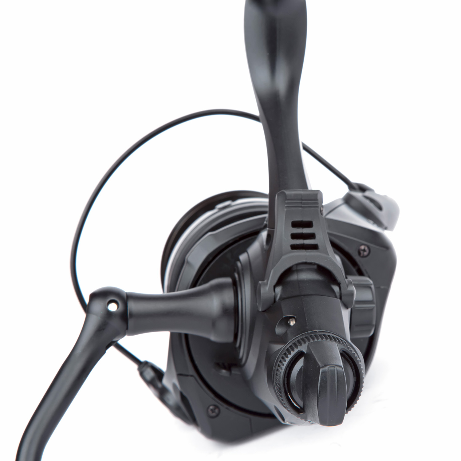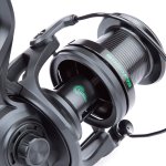 Kołowrotek posiada również blokadę otwartego kabłąka, wolną oscylację zapewniającą idealne układanie linki oraz trzy klipsy na szpuli, które pozwalają oznaczyć trzy różne odległości nęcenia. Aluminiowa korbka CNC w czarnym anodowanym wykończeniu wyposażona jest w wygodny, gumowy uchwyt, który zapewnia pewny chwyt podczas szybkiego zwijania.
