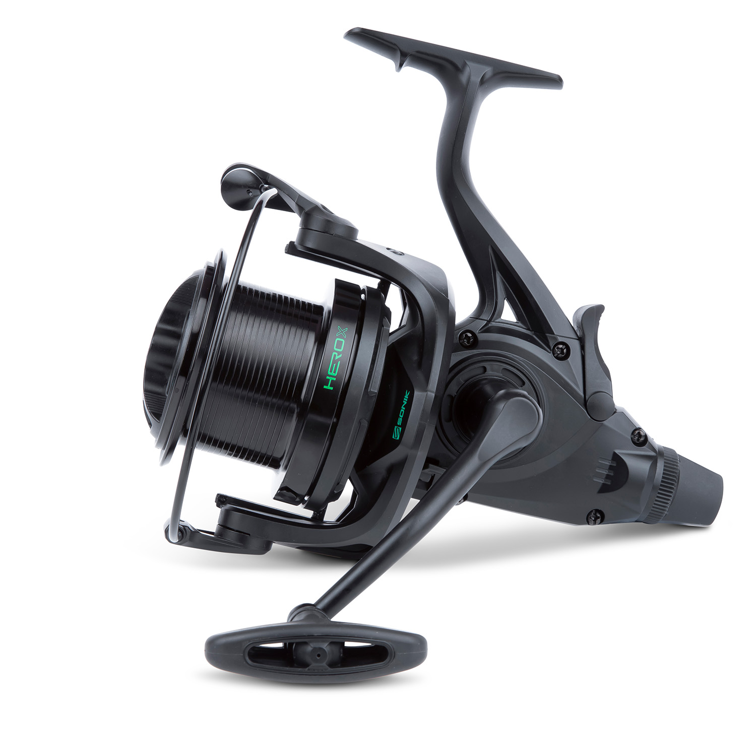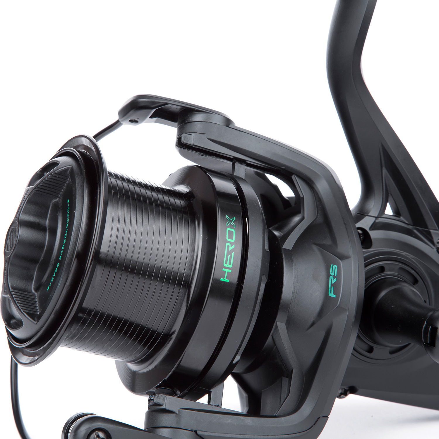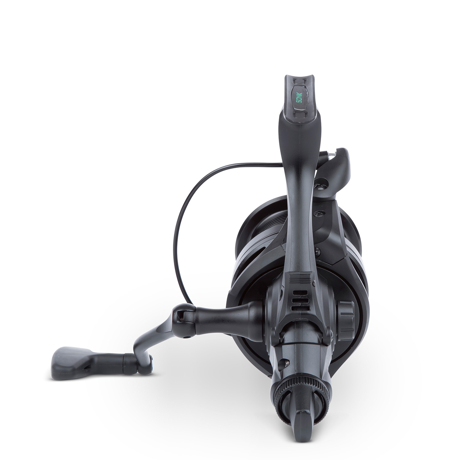 Kołowrotek posiada również blokadę otwartego kabłąka, wolną oscylację zapewniającą idealne układanie linki oraz trzy klipsy na szpuli, które pozwalają oznaczyć trzy różne odległości nęcenia. Aluminiowa korbka CNC w czarnym anodowanym wykończeniu wyposażona jest w wygodny, gumowy uchwyt, który zapewnia pewny chwyt podczas szybkiego zwijania.
