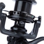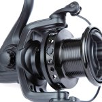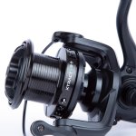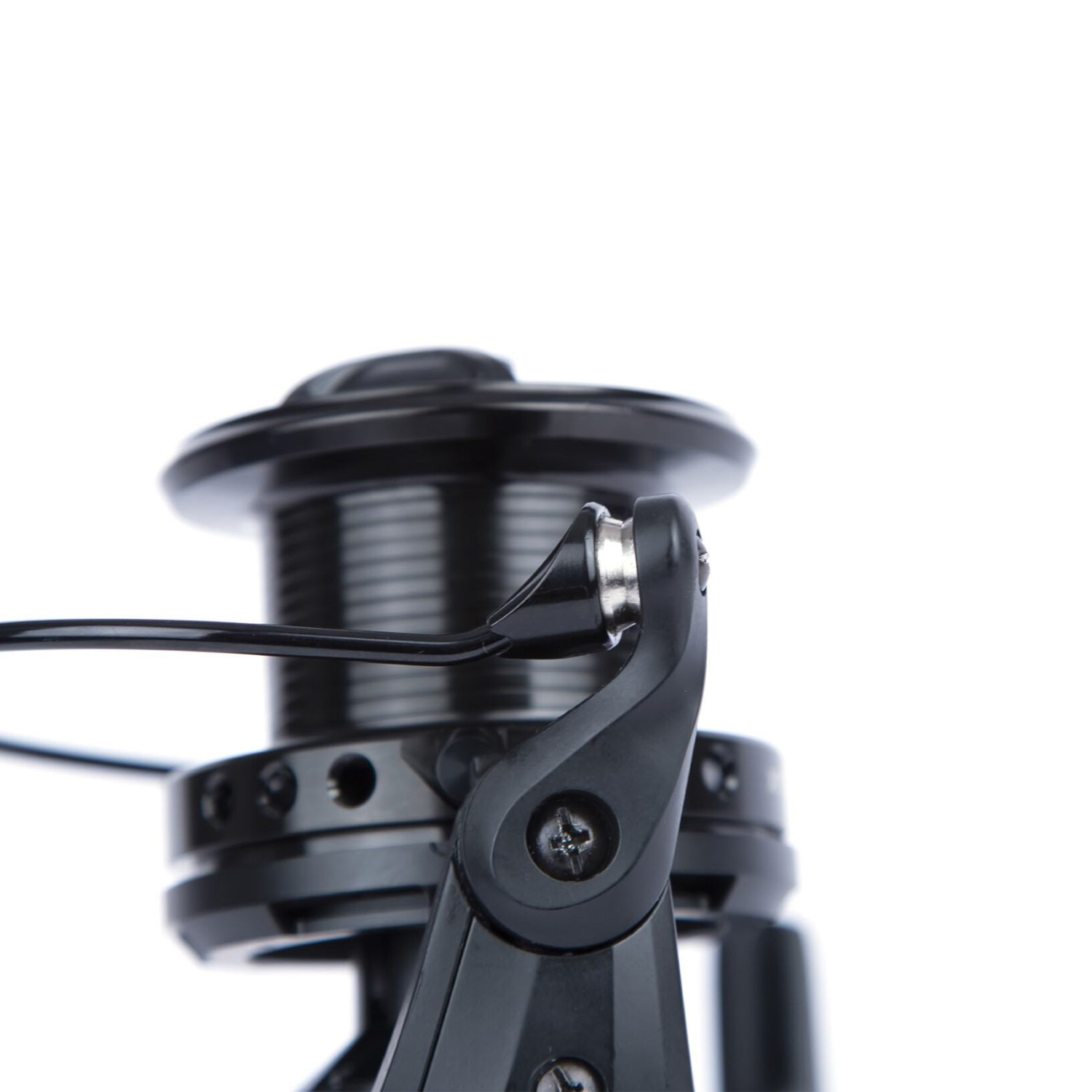 Model wyposażony jest w bardzo szybkie przełożenie 5.7:1, co pozwala na zwijanie aż około 1,45 m żyłki na jeden obrót korbki, co znacząco przyspiesza proces nęcenia na dużych odległościach. Płytka szpula typu long cast idealnie współpracuje z plecionkami do spoda, a wolna oscylacja zapewnia bardzo równe układanie linki.