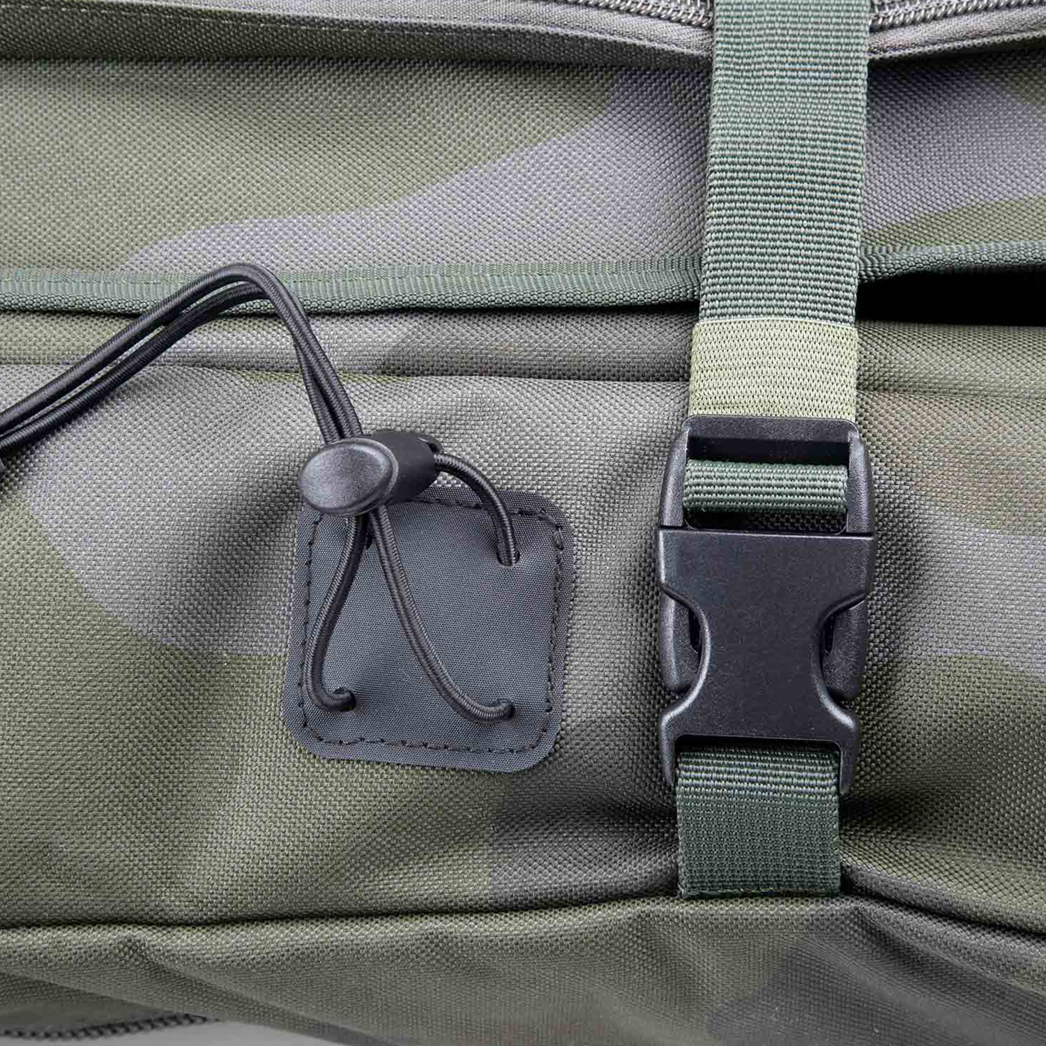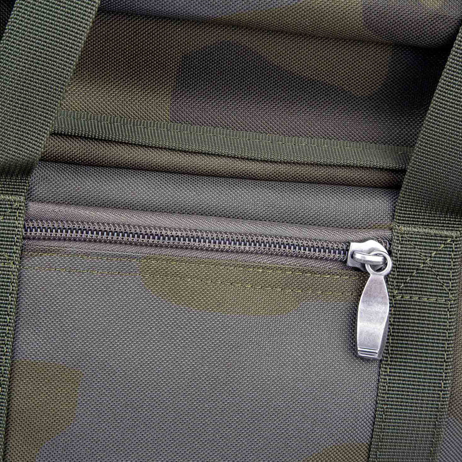 Pokrowiec wykonany jest z wysokiej jakości materiałów i posiada wiele praktycznych rozwiązań. Duża kieszeń na kołowrotki została zaprojektowana tak, aby pomieścić większość popularnych wędek karpiowych z teleskopowym dolnikiem, niezależnie od długości rękojeści.