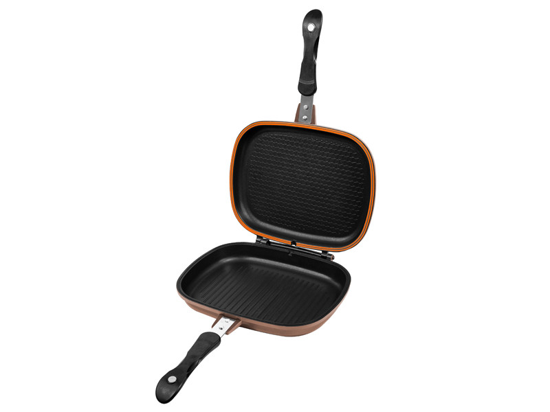 Dzięki magnesowi na uchwycie poszczególne połówki przylegają idealnie po zamknięciu, dzięki czemu podczas gotowania można w razie potrzeby obrócić patelnię. Uszczelka obwodowa odporna na wysokie temperatury zapewnia doskonałą szczelność. Zdecydowanie największą zaletą zamkniętej patelni jest to, że ciepło kumuluje się w środku znacznie szybciej i nie ucieka z patelni podczas gotowania. Dzięki temu przygotowywanie posiłków jest znacznie szybsze i łatwiejsze.