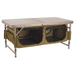 - Rozwiązanie 2-w-1 na dłuższe zasiadki, które łączy w sobie duży stół z miejscem do przechowywania pod spodem
