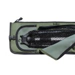 Model posiada dodatkową długą boczną kieszeń zamykaną na zamek błyskawiczny do przenoszenia podbieraka oraz sztyc. Na niej są naszyte pasy do ułożenia sztyc, które można ściągnąć. Pokrowiec pomieści większość trudnego do złożenia wyposażenia.