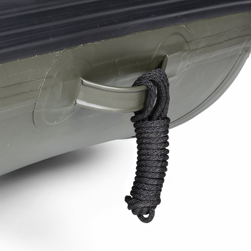 - Wzmacniana podstawa pontonu PCV o grubości 0,9 mm oraz PCV o grubości 0,7 mm pod burtami dla zwiększenia wytrzymałości i odporności