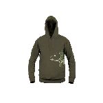 Wykonana jest z ciemnozielonego materiału, który doskonale komponuje się z naturalnym otoczeniem. Przedstawiony na bluzie motyw karpiowy składa się w całości z poszczególnych elementów montażowych zestawu karpiowego. To sprawia, że Delphin TACKLE jest rozpoznawalnym i naprawdę wyjątkowym elementem wśród odzieży dla karpiarzy. W przedniej części posiada dwie kieszenie, które pozwalają ogrzać dłonie w chłodne dni, ale także przechowywać i przenosić różne rzeczy.
