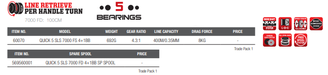 Kołowrotek D.A.M QUICK 5 SLS 7000 FS 4+1BB